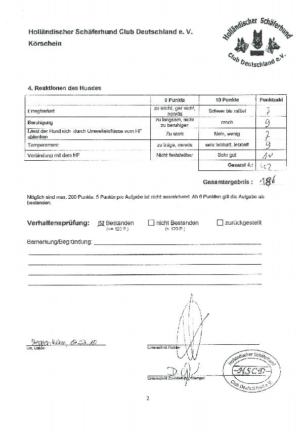 Hier die Ergebnisse. Beim Wesenstest gibt es max. 210 Pkt. Da können sich die 186 Punkte sehen lassen.