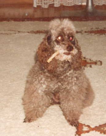 Mein erster Hund war ein silberbrauner Zwergpudel namens Tüpfelchen vom Ulrichstein, den ich im Alter von 8 Jahren bekommen habe. Schon damals wollte ich, wie ich es bei den Schäferhunden gesehen habe, auch so etwas machen. Also bekam mein Pudelchen Sitz, Platz, Hopp und "Pass Auf" beigebracht. Mit meinem gleichaltrigen Nachbarn haben wir immer "Polizei" gespielt und mein Tüpfelchen hat Ihn am Weglaufen gehindert, indem Sie Ihn am Hosenbein festgehalten hat. Auch brachte Sie ihren Ball über ein selbstge-bautes Hindernis.... Das waren die ersten Schritte....
